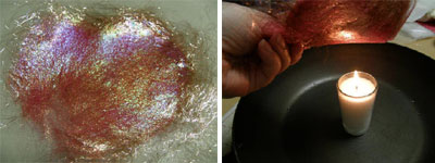 8) アイロンで AF をシート状にするときに毛糸などをはさむ