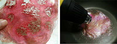 6) ロウソクの変わりにヒートガンで炙ってみる。