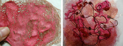 この他にも使い方はいっぱい!紙に漉きこんだり、原毛といっしょにフェルトにしたり、 AF 自体が長い繊維なので原毛といっしょによって光る毛糸にしたり、 AF だけでよると、キラキラの糸ができます。