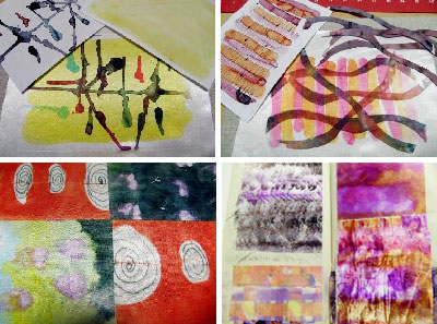 5 分程度置いてから、コピー用紙などにスポンジや筆で好きにデザインを描きます。